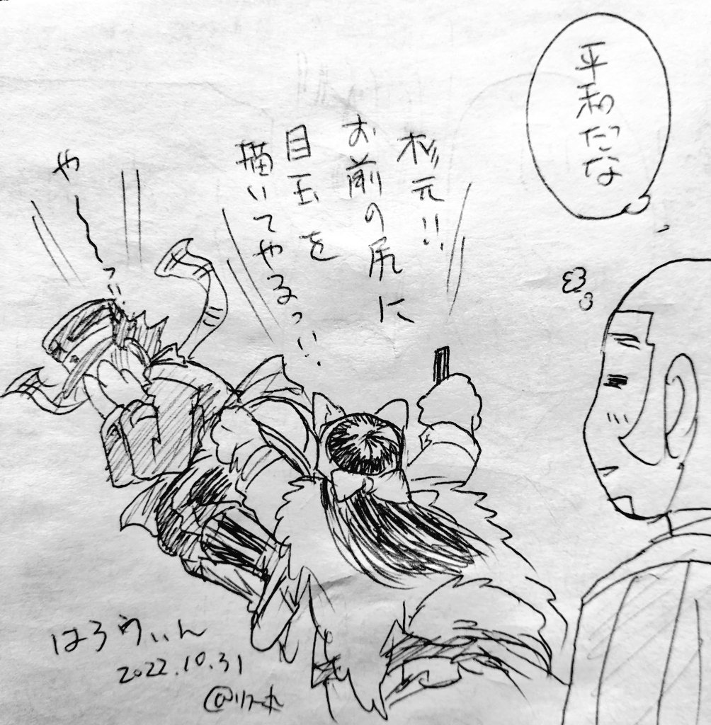 #ゴールデンカムイ版深夜の真剣お絵描き60分一本勝負 お題『アニメ応援』 ワンドロすっっっかり忘れて、アニカム観ながら参戦のハンドロ殴り描き 登場当初の不信感も吹っ飛ぶ不憫な菊田さん…頑張って… 房様はあの世の家臣達から声援貰ってそう