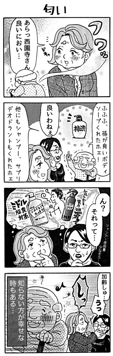 またお久しぶりになってしまいました… 4コマ漫画「おじい様といっしょ。」81。「匂い」 #漫画 #4コマ #四コマ #4コマ漫画 #四コマ漫画 #漫画が読めるハッシュタグ #おじい様といっしょ