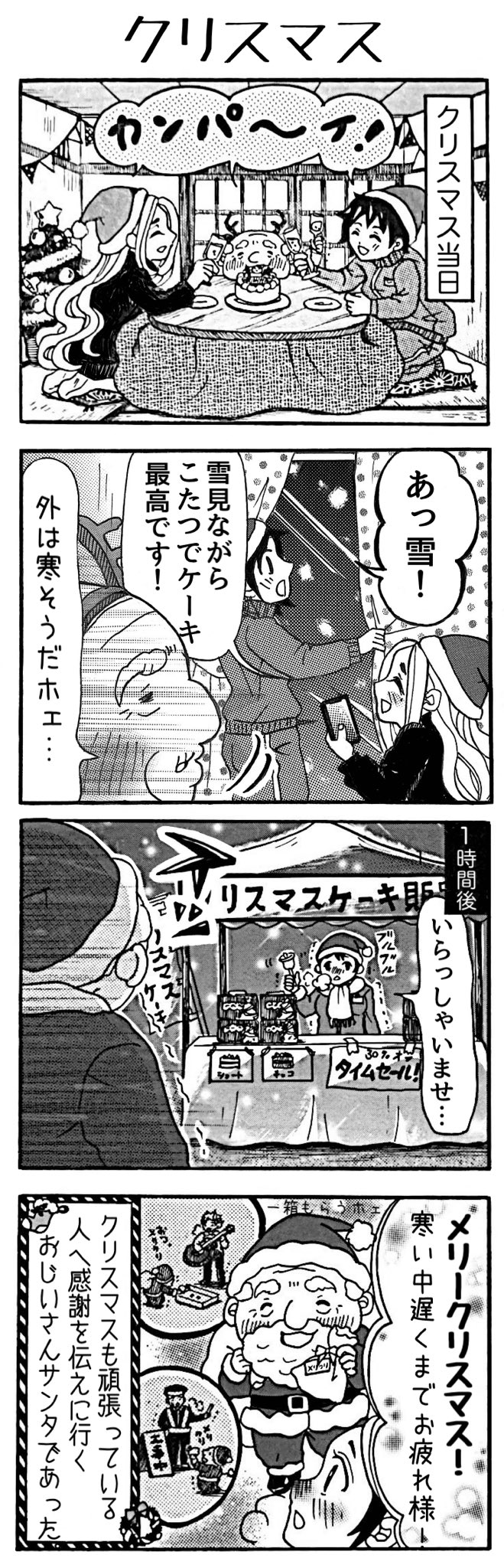 クリスマスも遅くまでお仕事などされてる方お疲れ様です。私もでした… 4コマ漫画「おじい様といっしょ。」72。「クリスマス」 #漫画 #4コマ #四コマ #4コマ漫画 #四コマ漫画 #漫画が読めるハッシュタグ #おじい様といっしょ #クリスマス