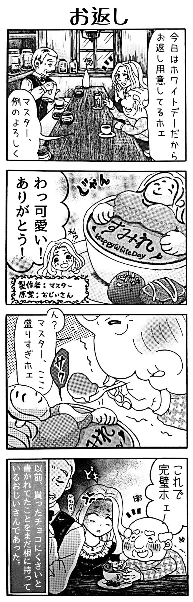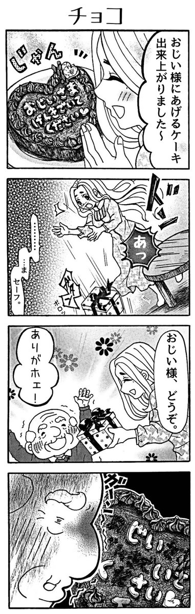 今日はバレンタインということで… 4コマ漫画「おじい様といっしょ。」77。「チョコ」 #漫画 #4コマ #四コマ #4コマ漫画 #四コマ漫画 #漫画が読めるハッシュタグ #おじい様といっしょ