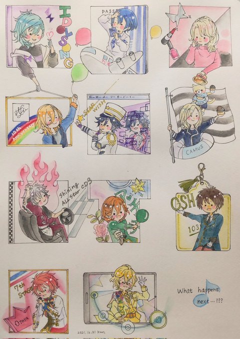 ❄お誕生日おめでとうございます❄ カミュ先輩の気品満ち溢れる美しさ、低音の心地良さ、QUARTET NIGHTでお仕事する時の雰囲気…たくさん、たくさん大好きです!!✨ 今回も歴代衣装の皆と一緒にお祝いだ!! #utapri_camus_BD2022