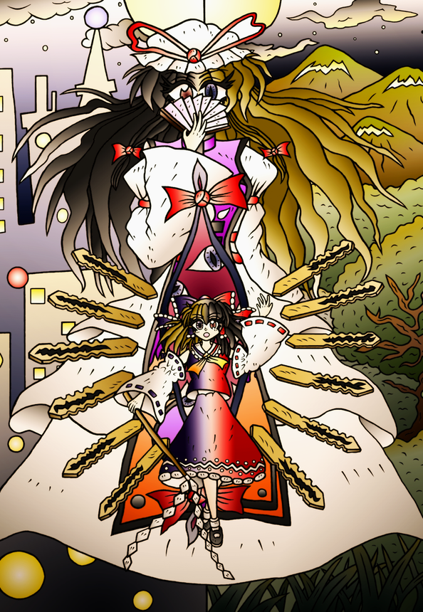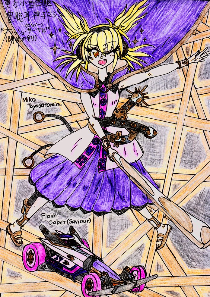#見た人は7年前後前の絵を晒す 1枚目は霊夢と紫の関係性を描いた絵。 最近やらなくなったデジタル絵ですね。 2枚目は私がニコニコ動画で投稿した動画紹介絵、3枚目は東方とR-TYPEの擬人化風コラボ、最後の4枚目は東方キャラモチーフのオリジナルミニ四駆を描いた絵です。
