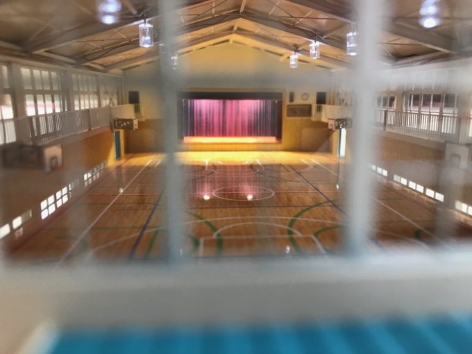 こんなタグがあったので(元々は絵師さん向け?)参加してみる。 前にもアップした1/150学校体育館。模型工房パーミルのキットを組み立てて内装作り込み。 #私の作品もっと沢山の人に広がれ祭り