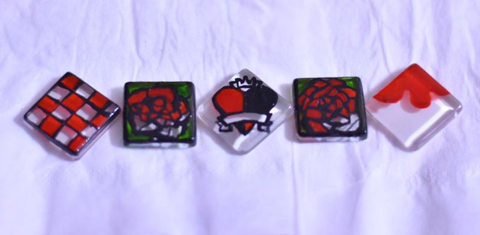 1 4 #ツイステファンアート 🌹パーツラビュル、ステンドグラス風プチガラスタイル。 全部爪楊枝で描いたから目がシパシパ👀🥀 ネイル用の筆を使えばよかった(^◇^;) 20/05/05 21:12