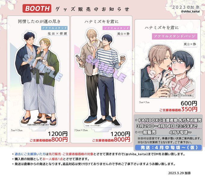 グッズ販売のお知らせ|加奈|pixivFANBOX kanashiba.fanbox.cc/posts/5598443?… 初めてで手探りですがBOOTHでグッズ販売します💪 (不備ないといいな…) ご興味持って頂けましたら是非☺️