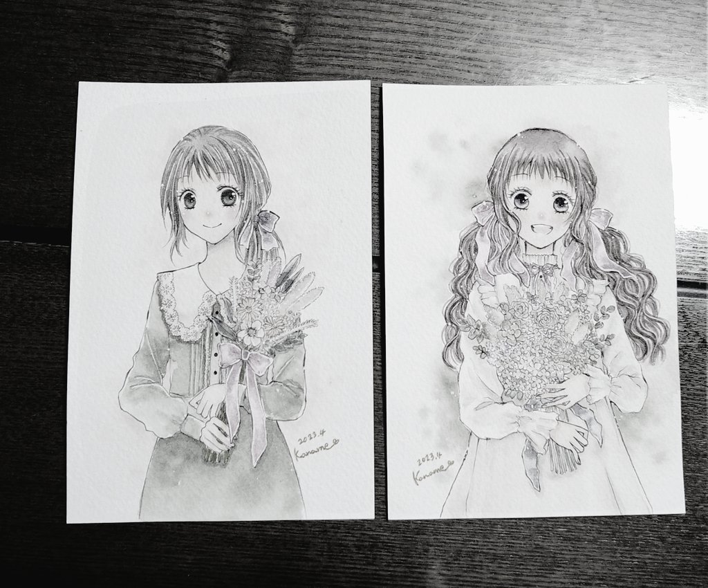 #今月描いた絵を晒そう 娘ちゃんが保育園に入って風邪ひいて小児科行ったりお休みしたりもれなく家族みんな風邪ひいたりして全然描けなかった🤣 来月はもっと描きたい。 (今日描いた2枚は明日改めてカラーで載せる予定)