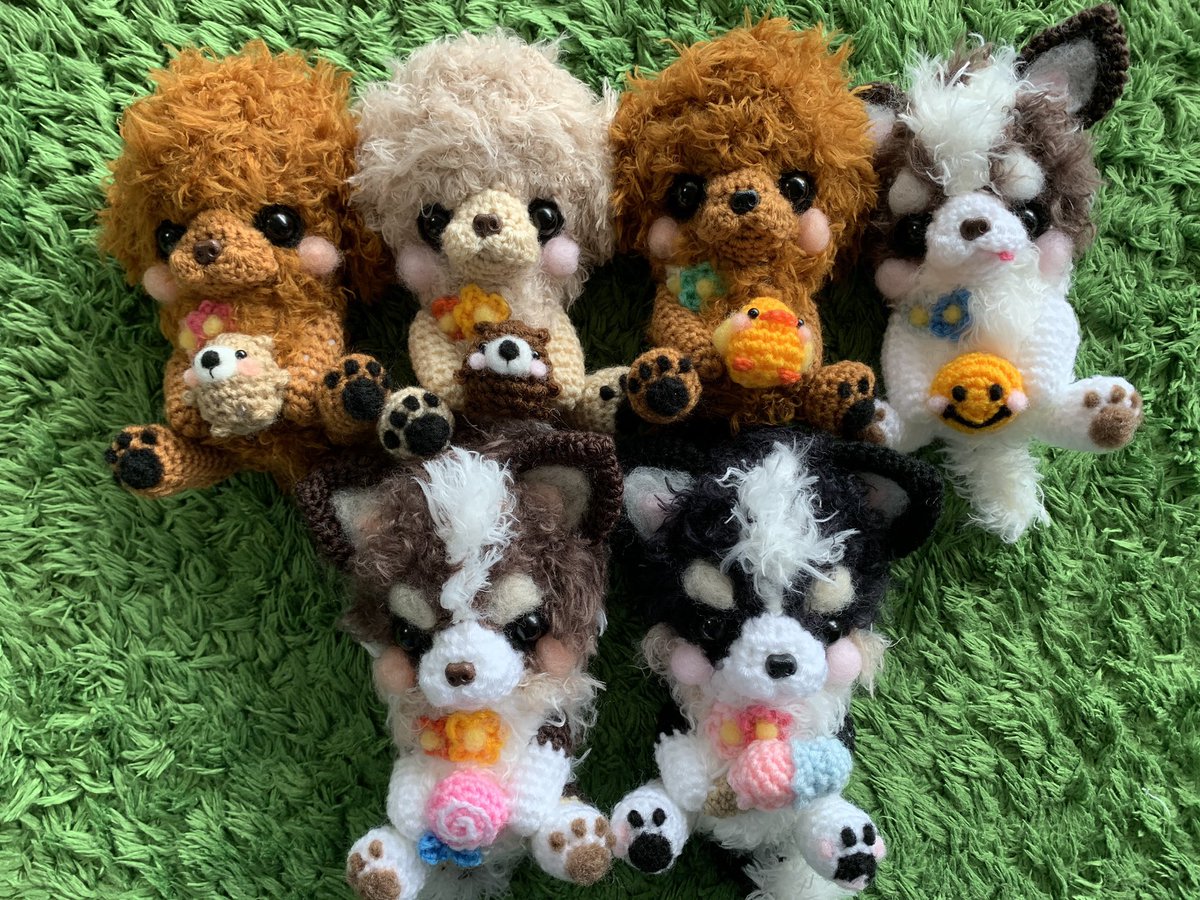 オーダーのマールちゃん😊 レギュラーサイズとキーホルダーが出来上がりました💕 レギュラーサイズは、ライオンちゃんのおもちゃとイチゴを持ちました🦁🍓 ビッグサイズも頼んで下さっているので、絶賛編み編み中です🧶 ありがとうございます🥺🙏🏻 #うちの子グッズ #あみぐるみ #ブルーマールチワワ