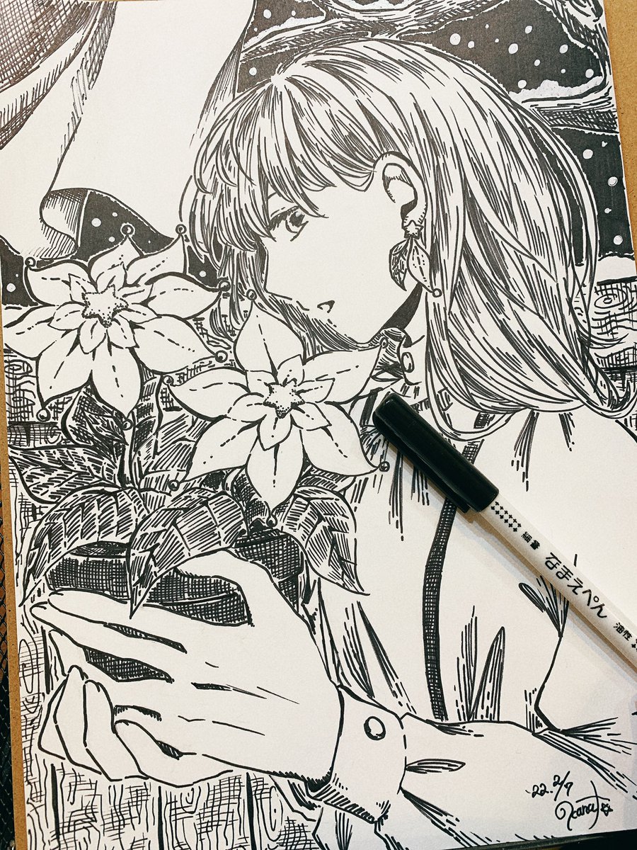 家に余りまくっている100均油性ペンを消費しよう~~! って1枚絵を描いたけども、1本も終わらなかった…!! 凄いインク持ち!👏 100均侮れない!! #油性ペン #ダイソー #ペン画 #絵描きさんと繋がりたい #冬の創作クラスタフォロー祭り #絵柄が好みって人にフォローされたい
