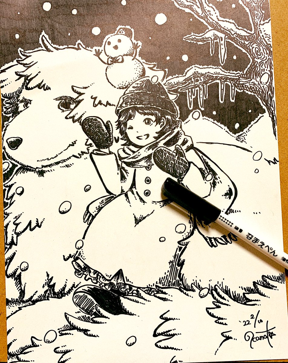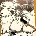 100均油性ペン使い切りイラスト2枚目! 今日は1日ずっと雪でしたね❄⛄ 前回と別のペン使っちゃったからわからないけど、多分1本分くらいは使えたんじゃないかな~😂 #油性ペン #ダイソー #ペン画 #絵描きさんと繋がたい #冬の創作クラスタフォロー祭り #絵柄が好みって人にフォローされたい