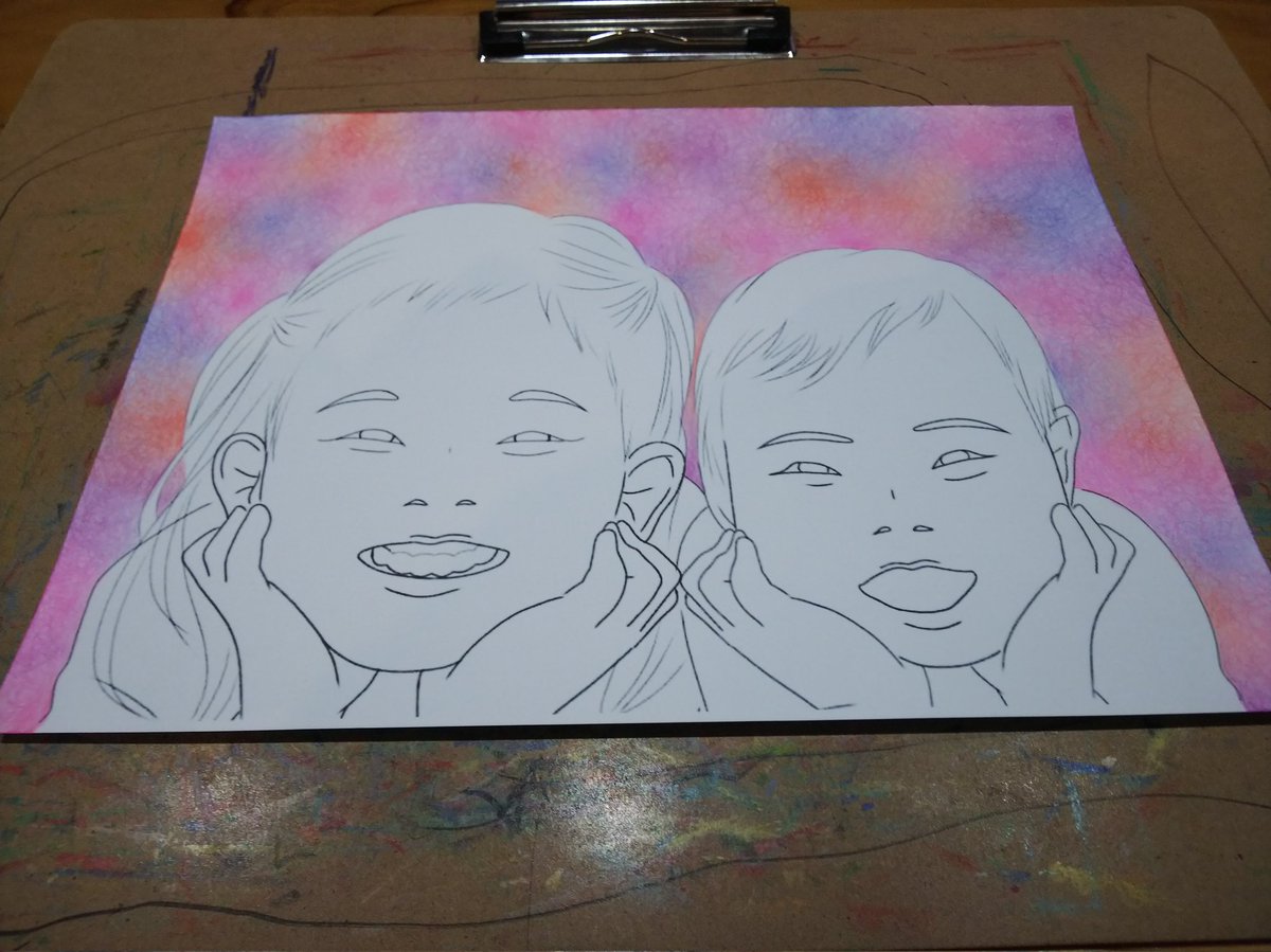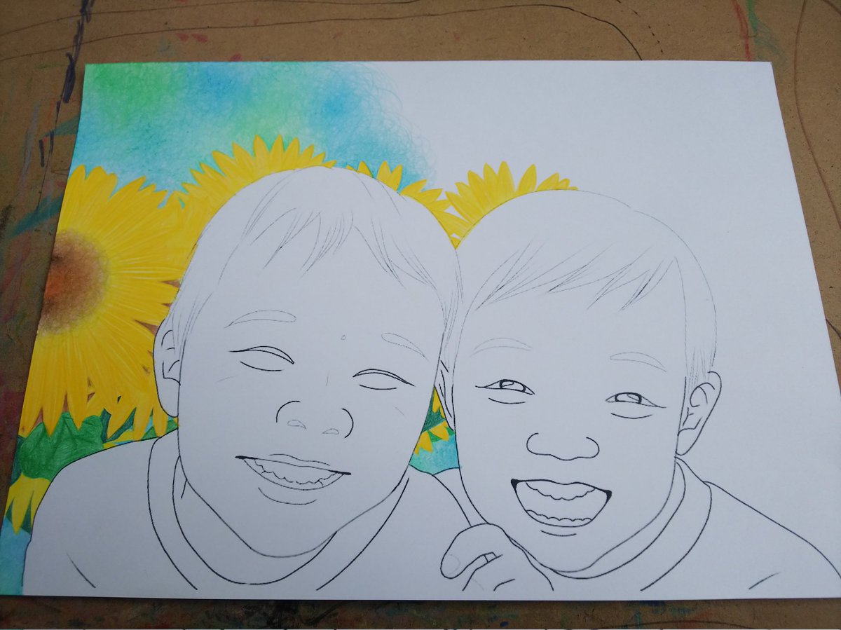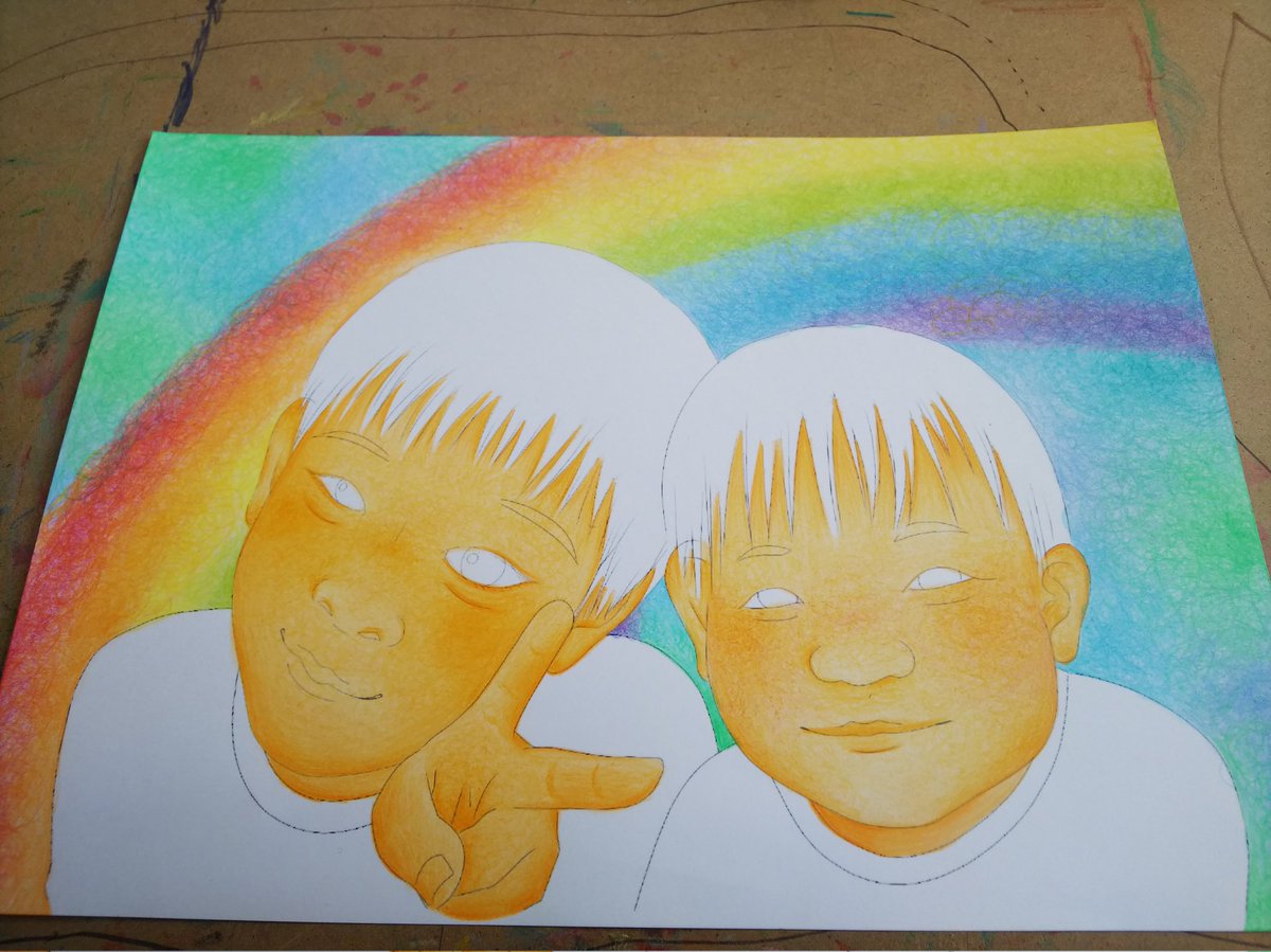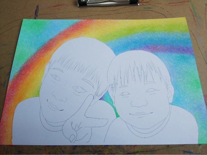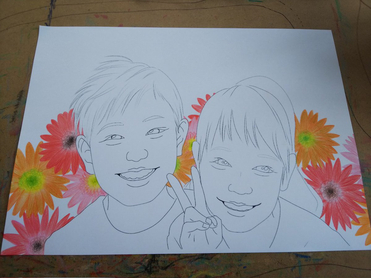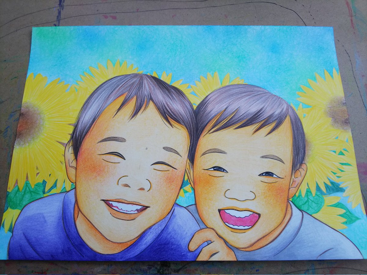 かわいい兄弟、別バージョンです\(^^)/ オーダーありがとうございました(*´∀`) お借りしたお写真、すっっっっっごくかわいかった~♡♡ #イラスト #イラストレーションの日2022 #お絵描き好きな人と繋がりたい #絵描きさんと繫がりたい #色鉛筆画