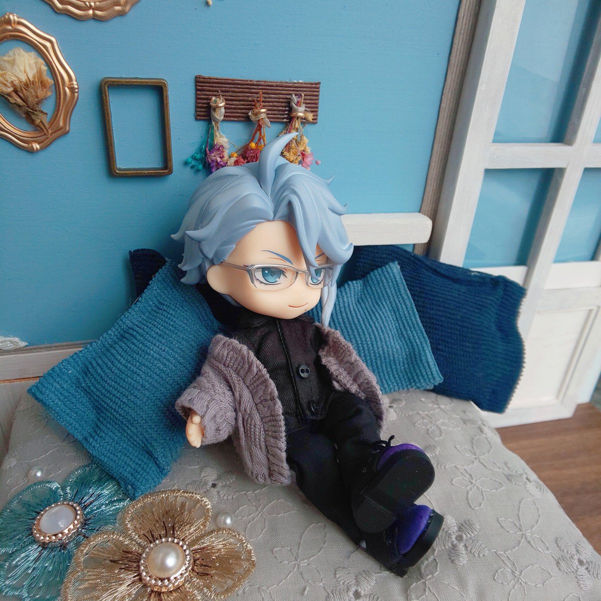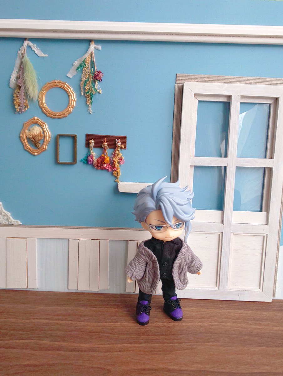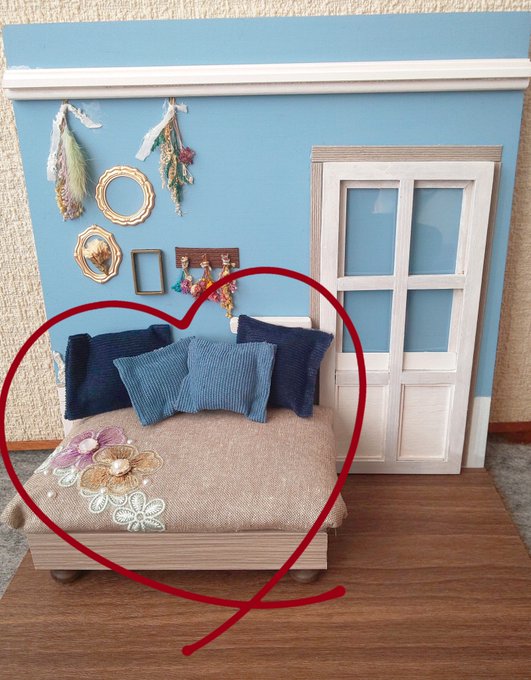 作っていた背景壁完成したのでお披露目\(*´ ꒳ `*)/°˖✧🤍×💙で大好きなドライフラワーで飾り付けしました💐上側の段差がある白の飾り木も自分で組み合わせて作ったものです…!!ソファーは綿を入れてフカフカにして中にクッションや服&靴を収納出来るようにしました👍️ #歌音のミニチュア作業工程
