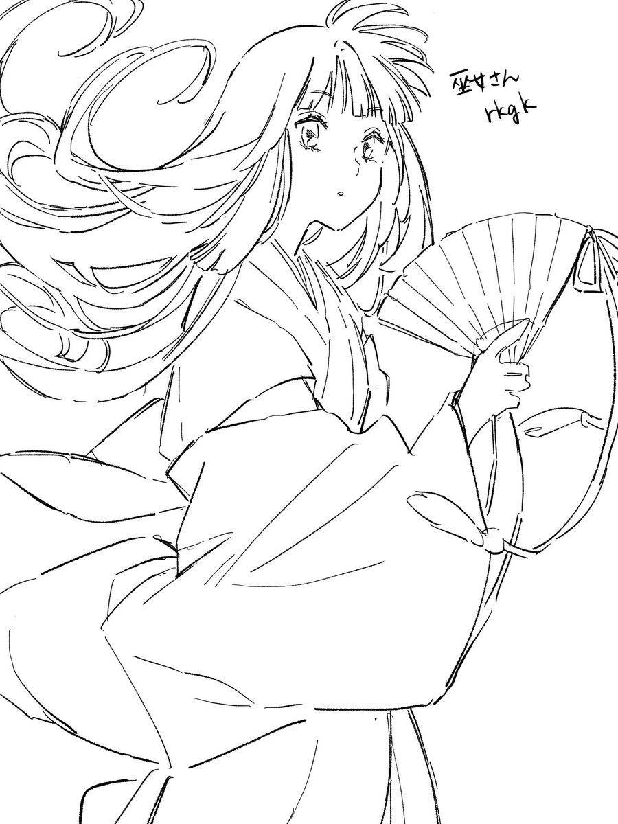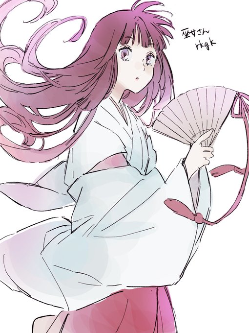 巫女さんrkgk 髪の毛描くの楽しかった〜! #創作 #イラスト