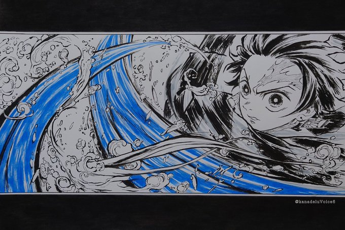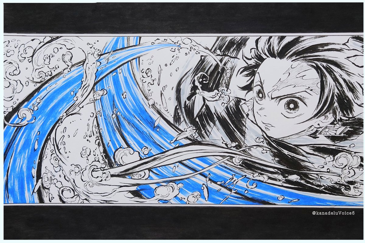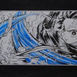 #アナログ絵を流してアナログ民を増やそう 素晴らしいタグが流れてきたので✨ がんばって描いた炭治郎です🥰お気に入り🎴💕 上下の黒いところは筆ペンで塗りました😊🎶手描き楽しいですよね✨ #模写 #鬼滅の刃ファンアート