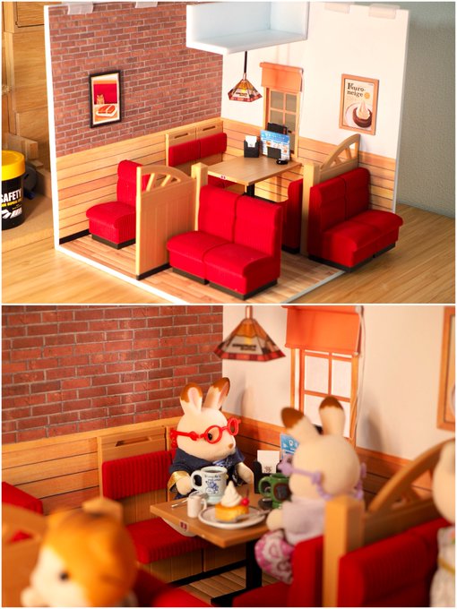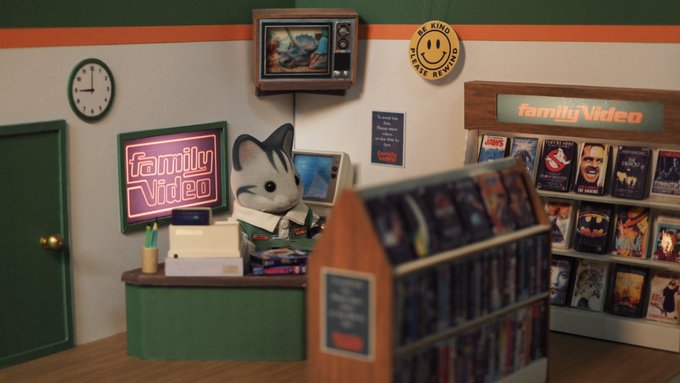 セリアのドールハウスベースを使って、シルバニア用にレンタルビデオ店を作りました〜! モデルはストレンジャーシングスに出てくるファミリービデオです📼✨ ボードにスチールシートを貼っているので、壁小物などはマグネットで付いており、全てバラせます!(リプ参照 #組み立て式撮影セット