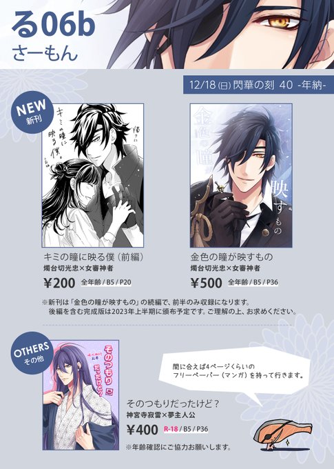 あなたのサークル「さーもん」は、コミックマーケット102で「土曜日 東地区 “Q” ブロック 19b」に配置されました! webcatalog.circle.ms/Perma/Circle/1… 燭さに中心、間に合えば面さに新刊でっす!!