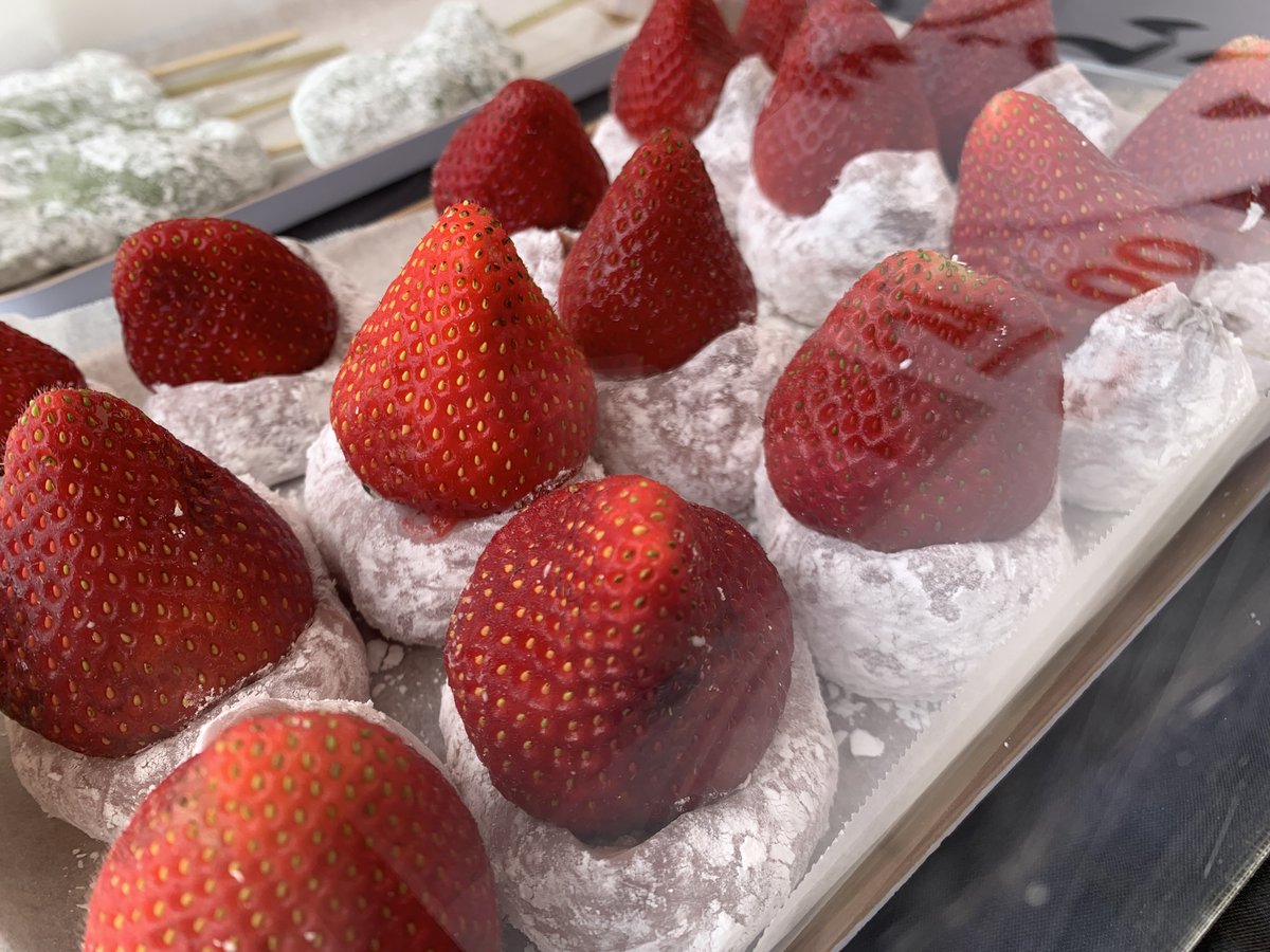 本日も晴天!戦国グッズマーケット内にて一夢庵出陣しております✨苺大福京都より先程届きました🍓食べ歩きに最適なひねり大福もあります🌸 『京都一夢庵大ふへん堂』 #関ケ原合戦祭り2022 #関ケ原合戦祭り