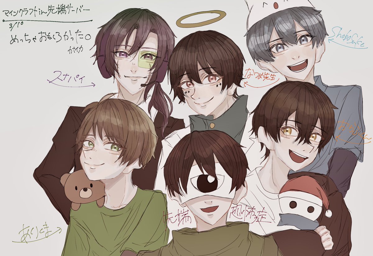 マインクラフト配信ありくまくん目当てで見たけど初めましての方含め皆さんめちゃくちゃ面白かったです…!! 描かせていただきました🙇♂️ #ありかのpic #せんたんあーと #なつめせんせ絵 #スナパイのポンチ絵 #見るかもわからん #しょぼスケッチ