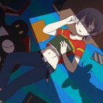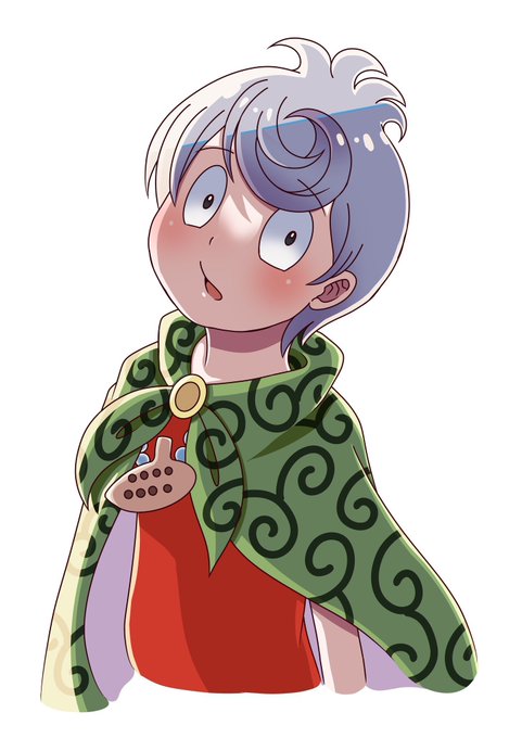 #今月描いた絵を晒そう 原作カラーの埋れ木くんとお皿食べる二世描いてた