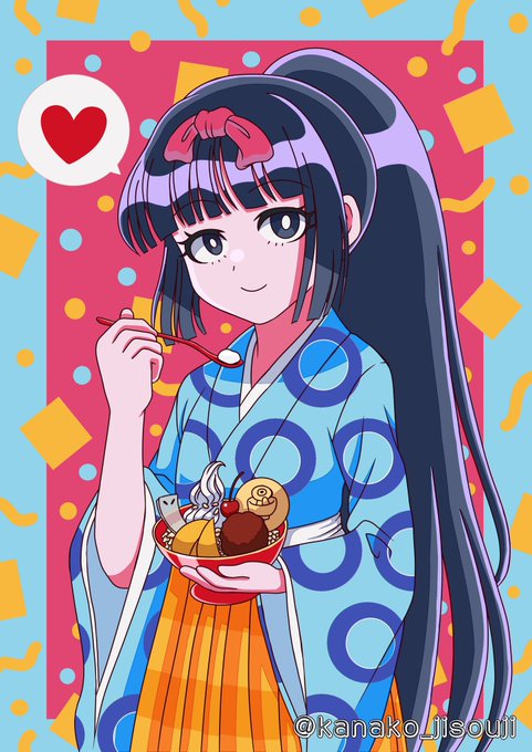 サンデーに舌鼓を打つ魔天道のミコちゃん #鬼太郎茶屋お絵描きキャンペーン
