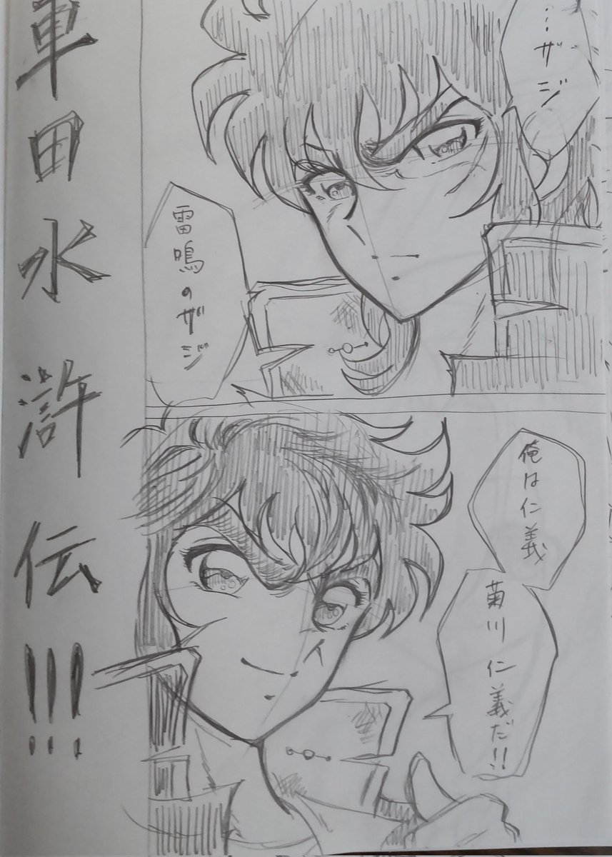 1 16 クルマダパラダイスで新作描くなら聖夜に鐘は鳴るのジョーと飛鳥無明帖の龍鬼だよなぁって思って描いてみた。 22/09/03 16:48