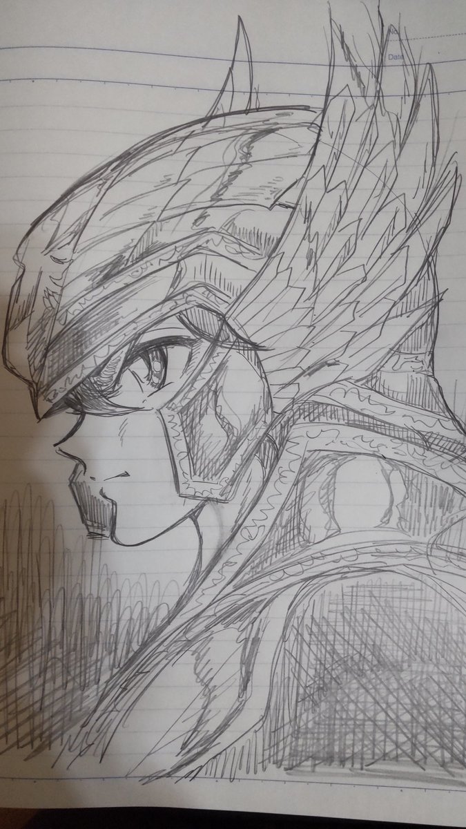 落書き。ガルーダの水鏡。NDを当時の車田先生が強く雄々しく凛としてペンを握ってた絶頂の頃の絵で見たいって言うわしの願望ですよ…🥲