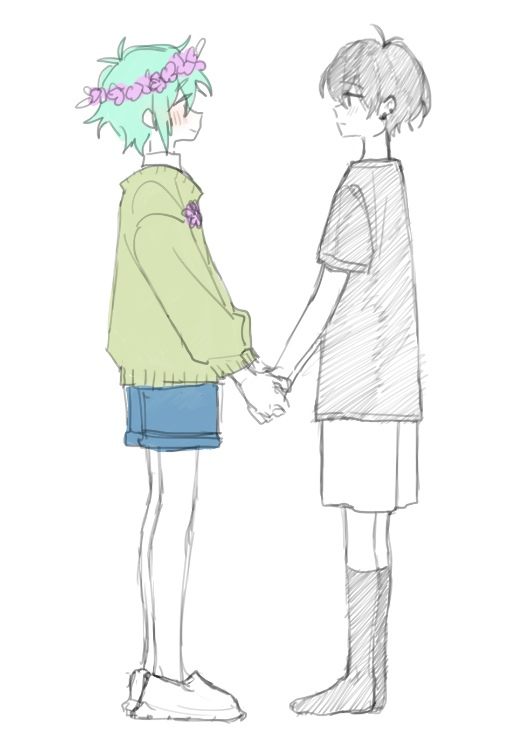 #OMORIFANART #omorisunflower не знала стоит ли сюда это постить потому что на русский мне лень переводить энивей! Omori(!) and Basil 17 y.o. AU