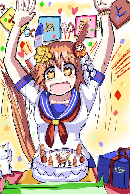 #ウマ娘 #ウマ娘プリティーダービー #マチカネフクキタル生誕祭2023 #マチカネフクキタル #イラスト トレーナー「フクキタル!お誕生日おめでとう! 上手ではないが、手作りケーキだぞ!」 フクキタル「う。。うおおおおおおおおおおおっ! !!!大大大!大吉ケーキ!!サプライズです!!」