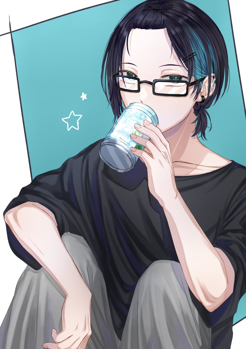 4 28 お酒飲みまゆゆ(眼鏡差分) #灰画 #イラスト 23/02/21 23:01