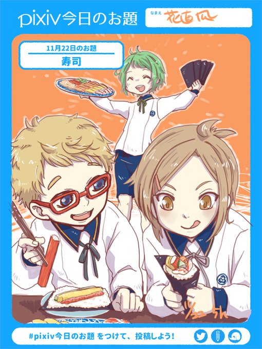 #Sketchドロー #寿司 #pixiv今日のお題 #sensei #刀剣乱舞 #包丁藤四郎 #博多藤四郎 #毛利藤四郎 短刀年少組に厨当番さすと高確率で手巻き寿司他お好み焼き... sketch.pixiv.net/items/80249634…