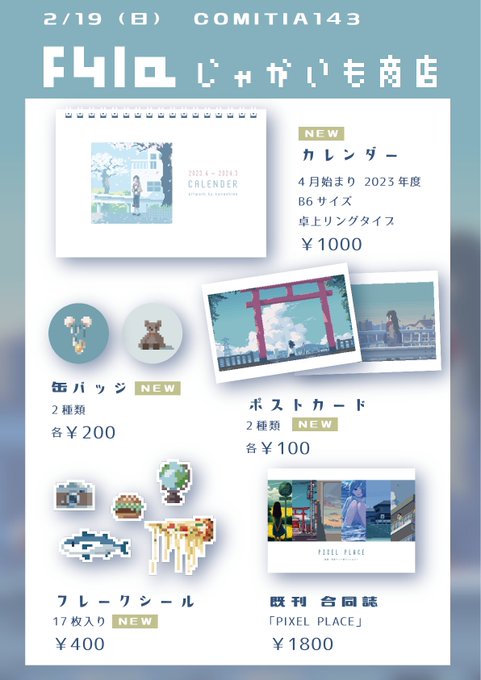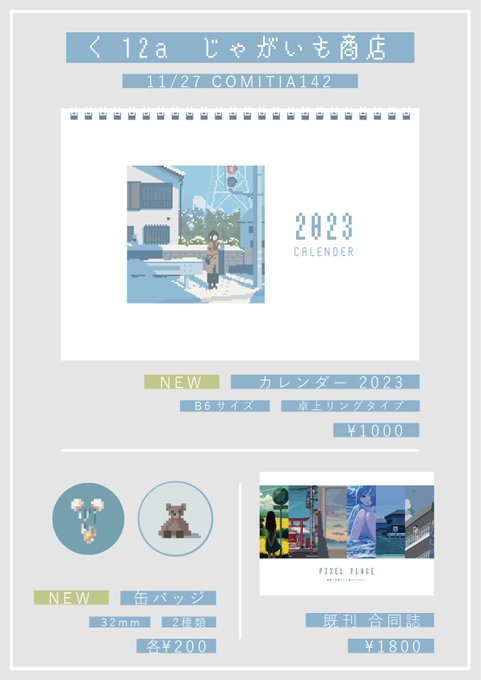 コミティア142のお品書きです! 11/27(日) スペースは「く12a」です。 2023年のカレンダーを持って行きます。 よろしくお願いします。 #コミティア142 #COMITIA142