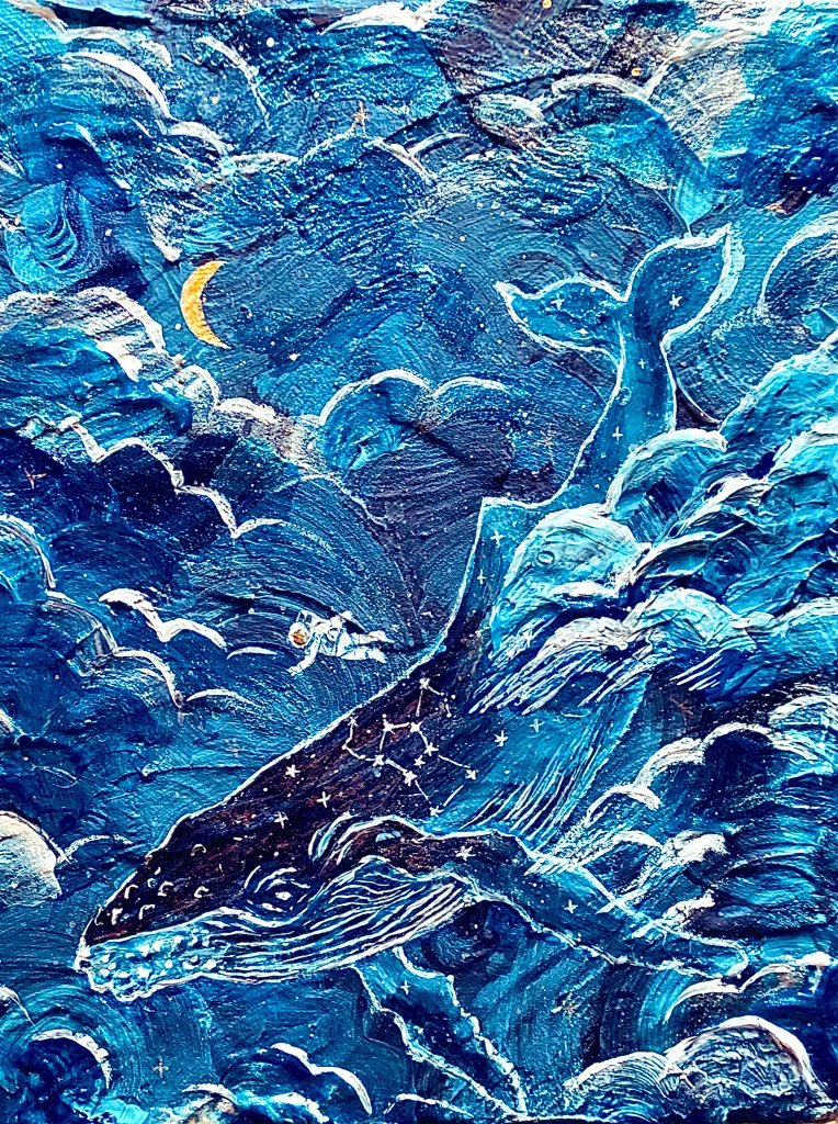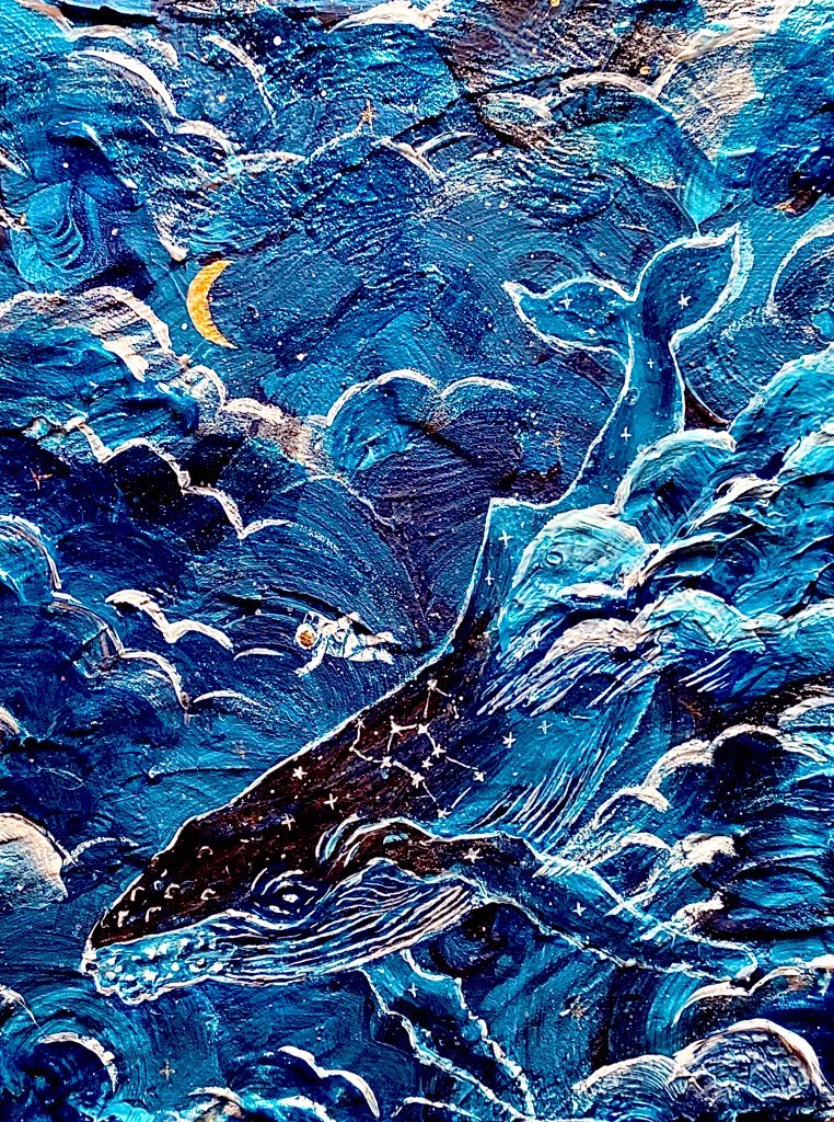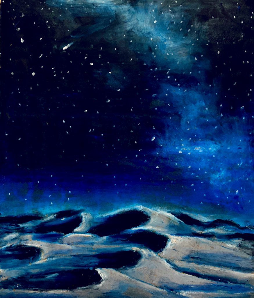 #クリエイターさんの夜っぽい作品が見たい アクリル絵具やクレヨン、ペンなどを使用しています。