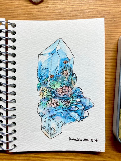 9 47 「coral reef quartz」 2022.12.26 #ペン画 #水彩画 #アナログ絵 22/12/26 15:26