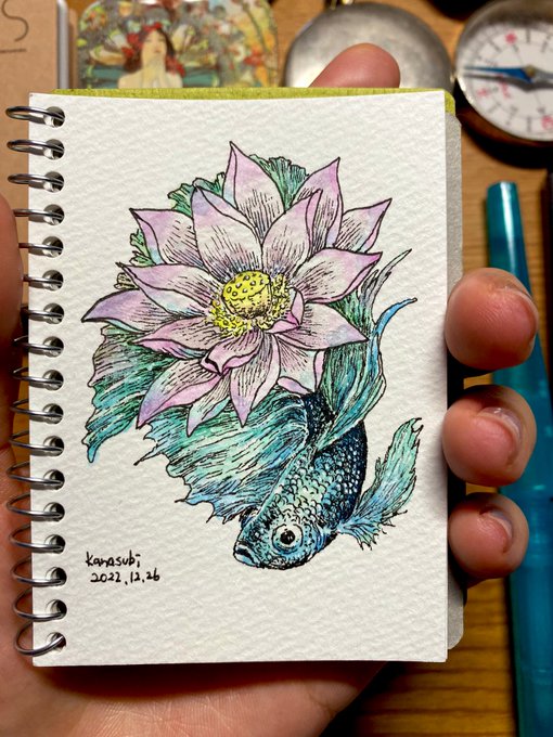 「Lotus」 2022.12.26 #ペン画 #水彩画 #アナログ絵