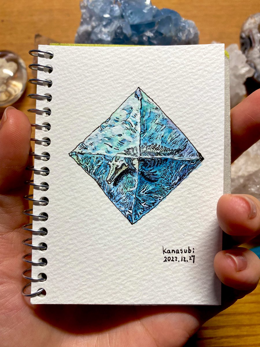 9 67 「Fluorite」 #水彩画 #鉱物アドベントカレンダー2022 22/12/27 02:59