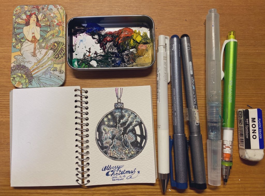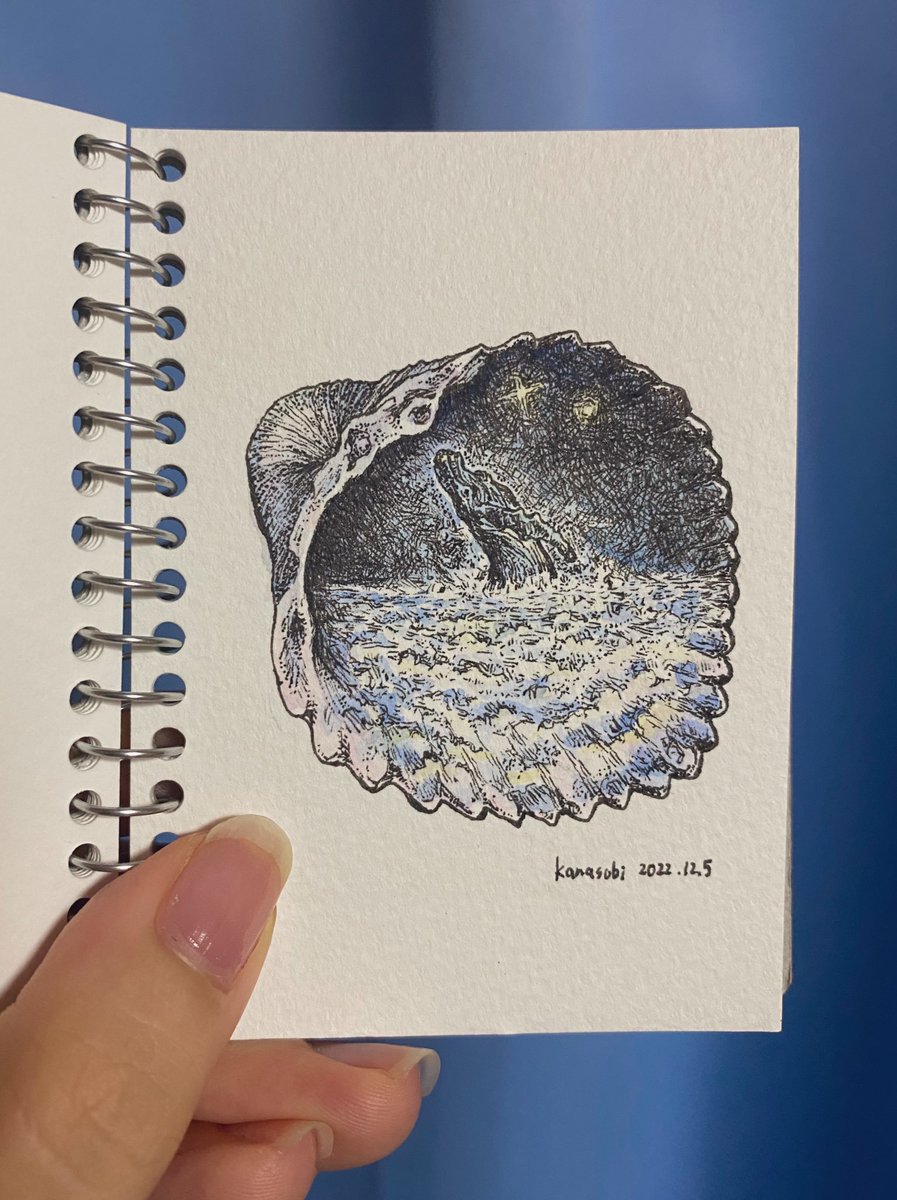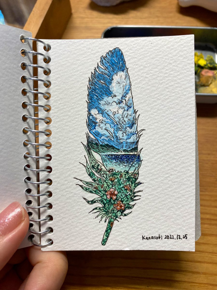 15 89 手のひらサイズのミニ手帳に描いたペン画たち。すこしひんやりしている。 #ペン画 22/12/16 11:44