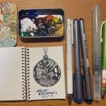 手のひらサイズのミニ手帳に描いたペン画たち。すこしひんやりしている。 #ペン画