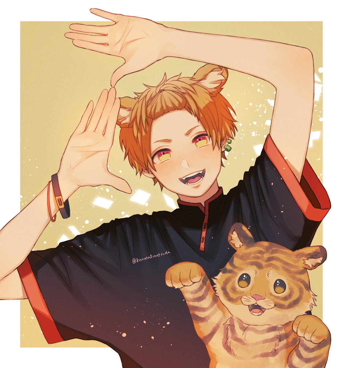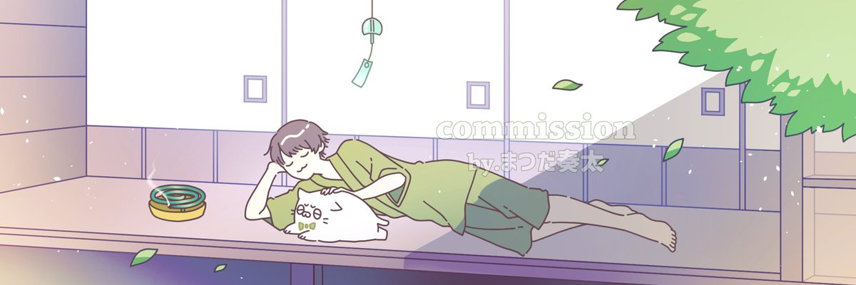 つかさくんのヘッダーイラストを描かせていただきました!😊👍 今回はHPに載ってるシンプルタイプの絵柄でのご依頼✨ きゃぬちも!という事で一緒に寝転がってます🐱 ご依頼頂きありがとう〜〜〜!!!! twitter.com/tks52607/statu…