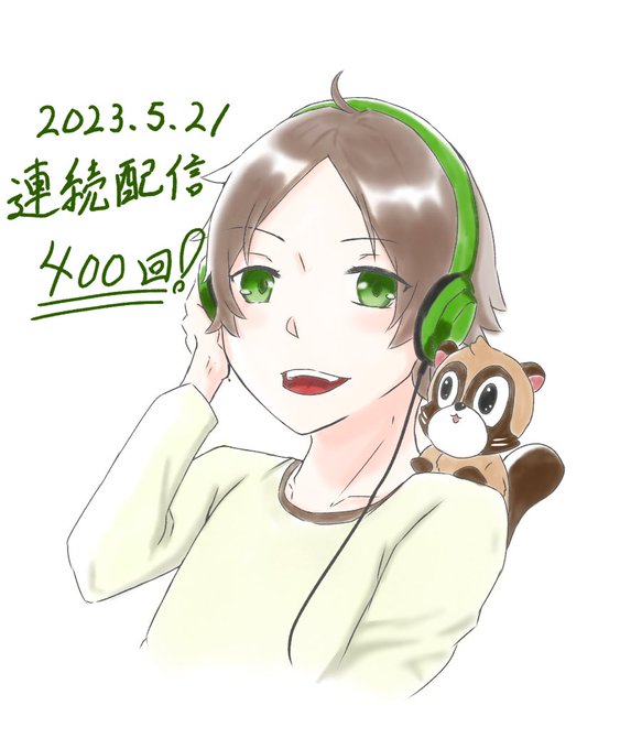 0 2 今日のらくがき💚 400日連続配信お疲れ様でした! #うらたぬ王国の美術館 23/05/23 01:00