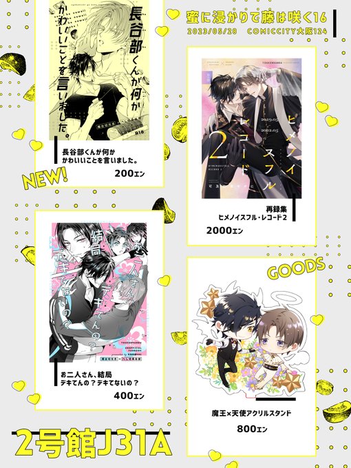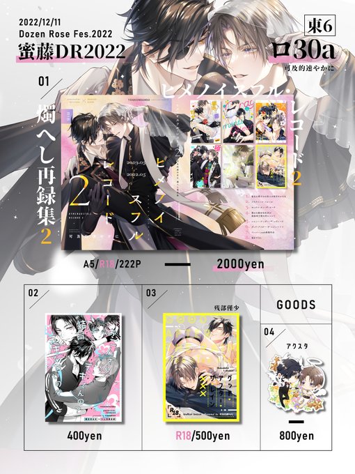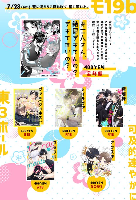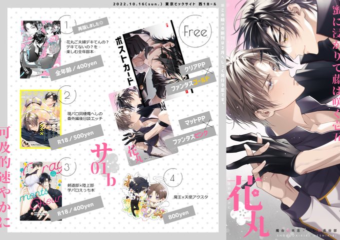蜜藤15/おしながき | 奏田 #pixiv pixiv.net/artworks/10192… お品書きあげました~新刊はありませんが無配ポスカは超かわいい紙なので紙に興味ある方も是非💮 ポスターにでかでかカプ名入れたよ御旗なので