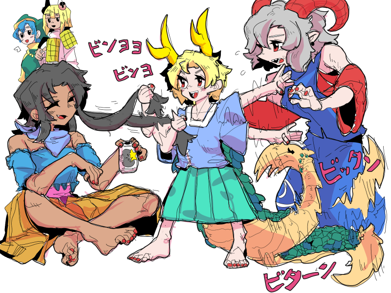 #6月6日は赤蛮奇の日 どこかの世界で流行ってたオフショル屠自古、暁ばんき、辱めを受けるきっちょ 序列は 屠自古サマ>ばんきちゃ>>>>>>>>>>野良犬とか>>>きっちょ