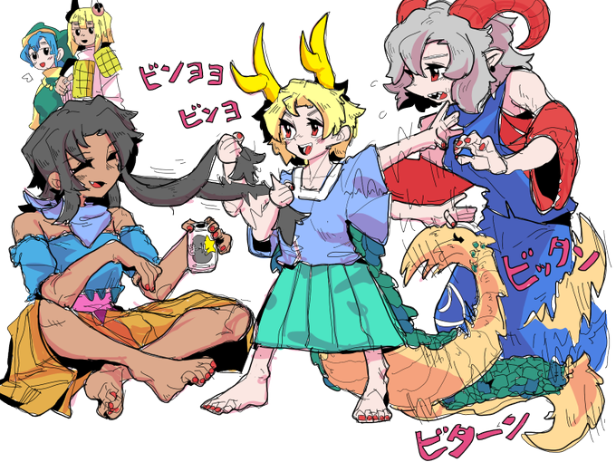 32 93 #6月6日は赤蛮奇の日 どこかの世界で流行ってたオフショル屠自古、暁ばんき、辱めを受けるきっちょ 序列は 屠自古サマ>ばんきちゃ>>>>>>>>>>野良犬とか>>>きっちょ 23/06/06 21:34