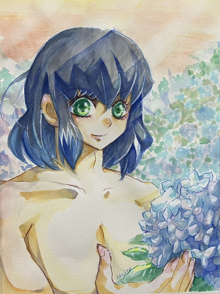 3 22 梅雨と夏の狭間で蒸し暑い🐗 来年は紫陽花をもっと綺麗に描きたいです #鬼滅の刃ファンアート #イラスト #デジタルイラスト #二次創作 #梅雨 #紫陽花 23/06/27 23:47