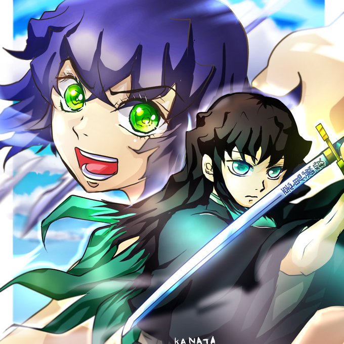水獄🐝じゃないけど、新緑と🌫️くん😁 昨年の今頃描いた過去絵 #鬼滅の刃ファンアート #イラスト #デジタルイラスト