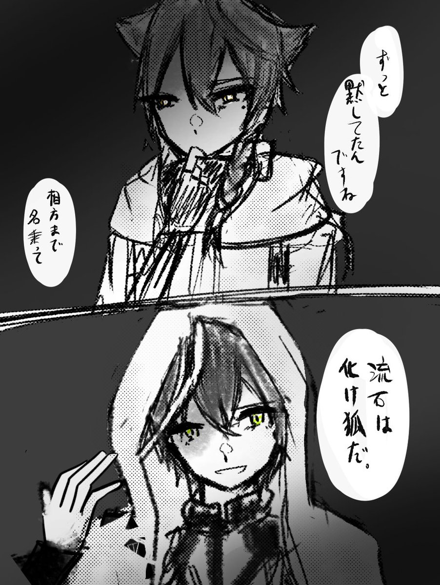 #金剛力也像 #絵ガク 描きたいところだけ。 🦊=教徒→裏切りの流れと仮定して、相方に裏切られたことに対して"大切な人を失うことで虚空に近づいた、それだけ。"ってネックレスを握りながら言う教祖様とか…。