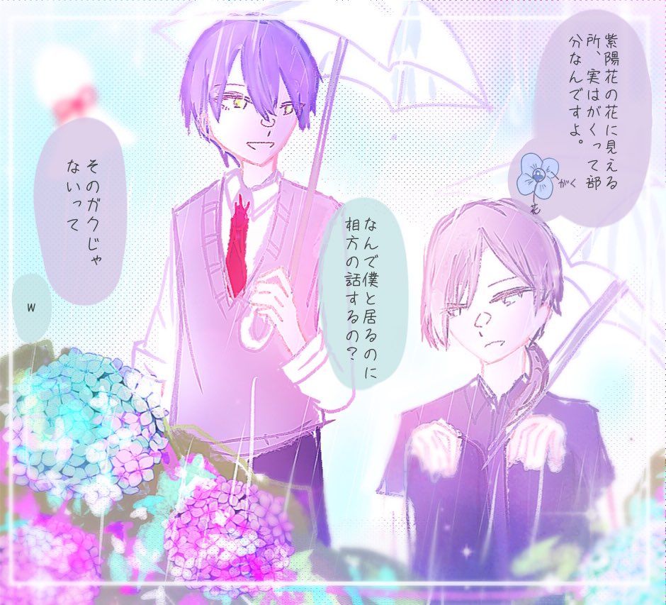 0 1 紫陽花組とアジサイ。 〜豆知識とメンヘラムーブと相方の名前を添えて〜 #金剛力也像 #かな絵 23/06/25 13:42