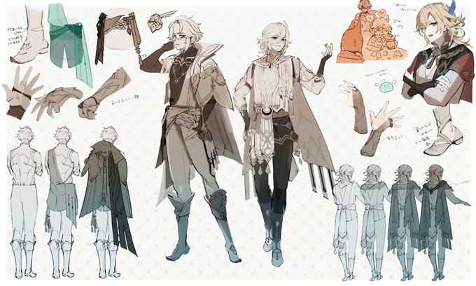自分用に…アルハイゼンとカーヴェ衣装解剖だ…! !原神衣装ここまでしないと理解できず描けないので…