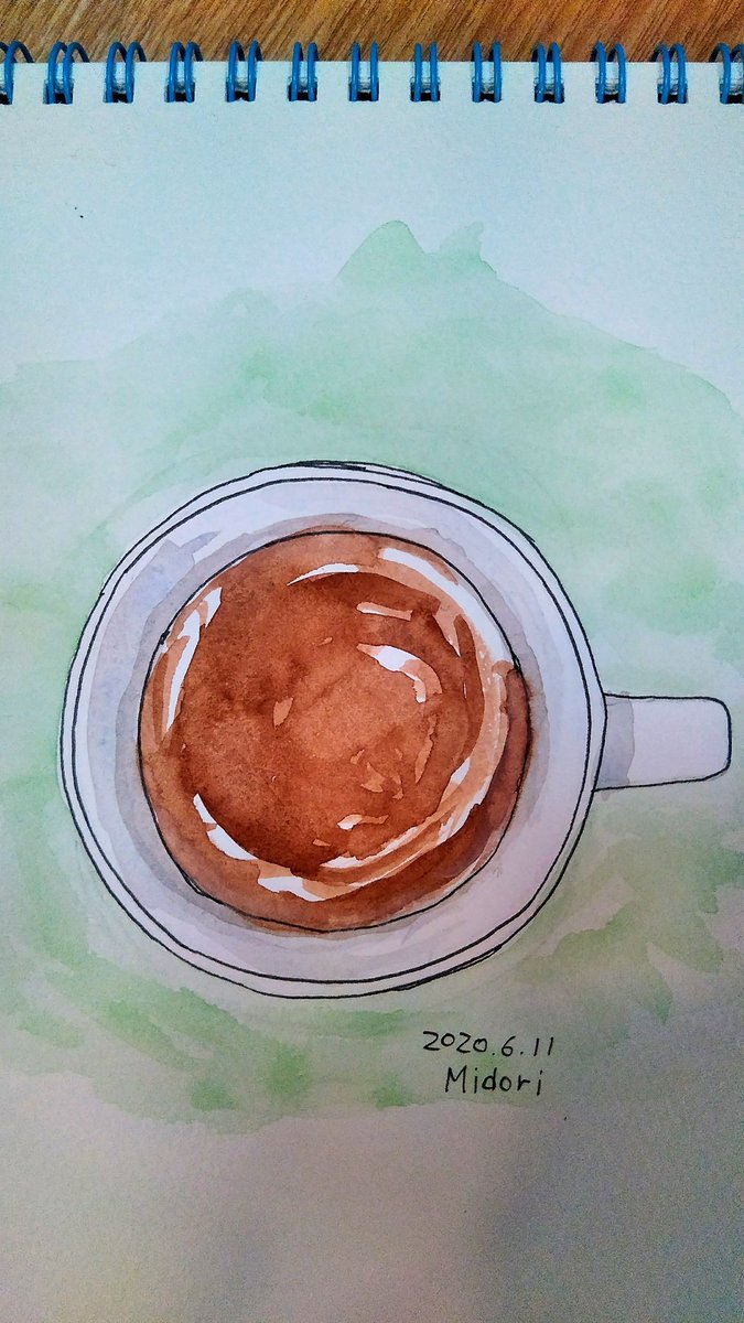 雨なので農作業はお休み!ということで上から見たコーヒーマグ。 「円がずれた!」と動揺するたび飲みそうになって困った。 #絵描きさんと仲良くなりたい #イラスト好きな人と繋がりたい #イラスト練習中 #おうちカフェ