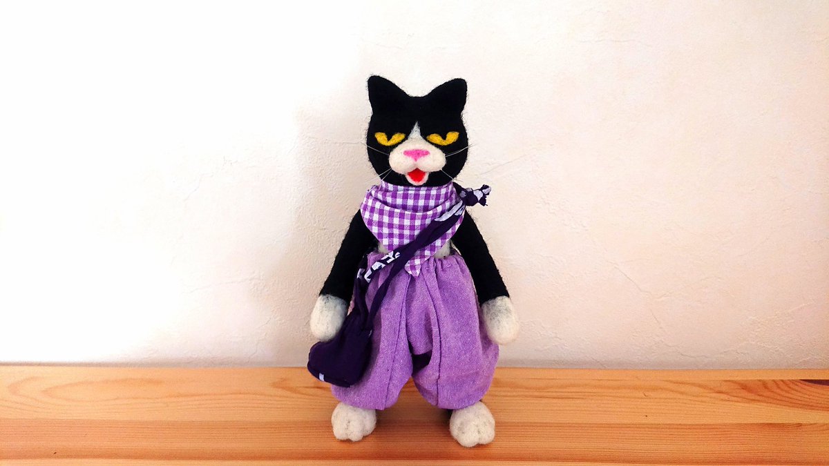 【豆之助・空手】完成~✨ 躍動感ヤバーい!😆 (自画自賛中 笑) #羊毛フェルト #needlefelting #doll #人形 #猫 #空手 #カンチャンズハウス #kanchanshouse