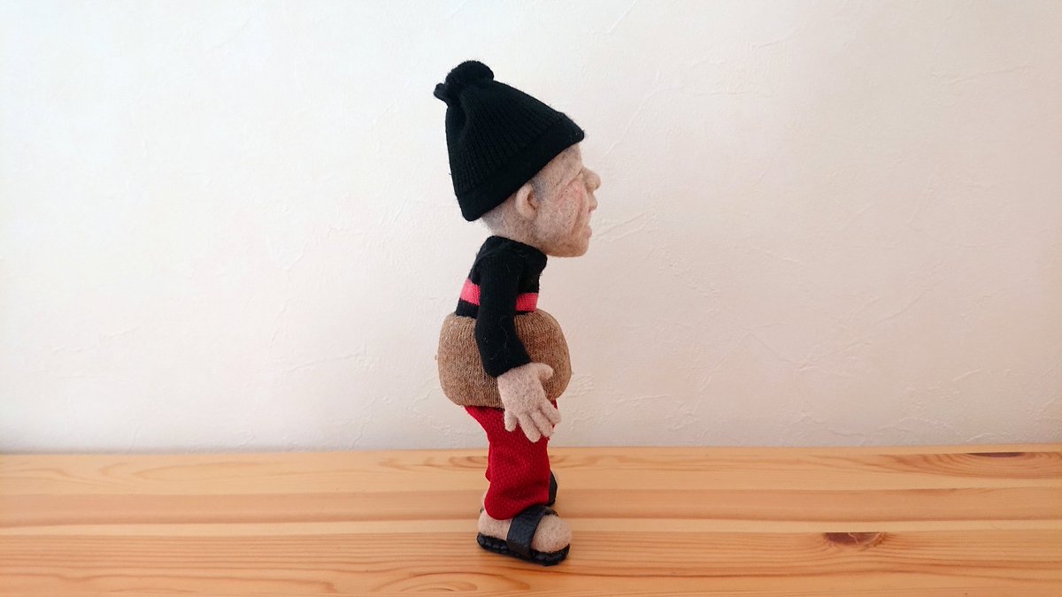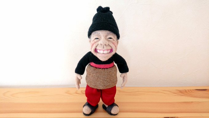 おんずさん人形(注文品) めっちゃ笑顔で 腹巻きと黒いニット帽で…というリクエストでした。 #人形 #羊毛フェルト #needlefelting #kanchans_house #カンチャンズハウス