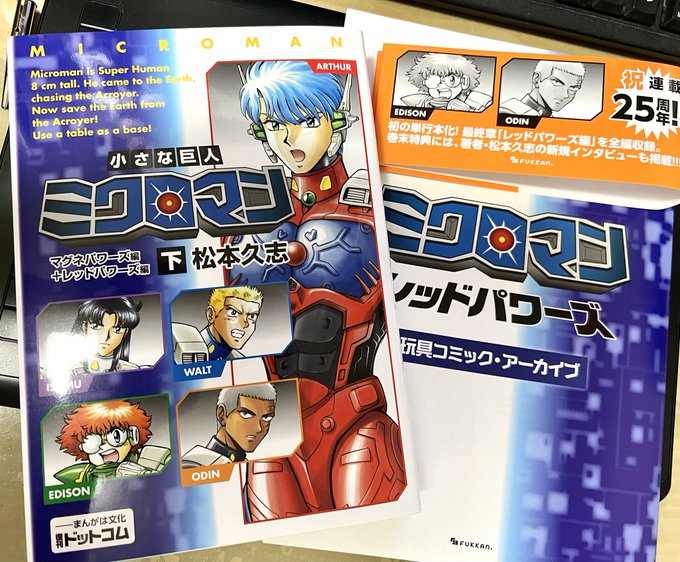 復刊ドットコム発行 ミクロマン上巻の表紙カラー担当しました。 分厚くて読み応えバッチリです!本屋さんで見かけましたらよろしくお願いします🤲 こちらからも買えます fukkan.com/fk/CartSearchD…
